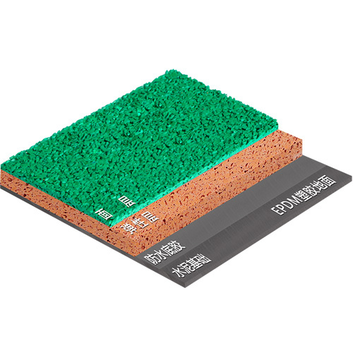 ②弹 性 层:EPDM颗粒+单组份胶水,环保净味、不返油、施工便捷。